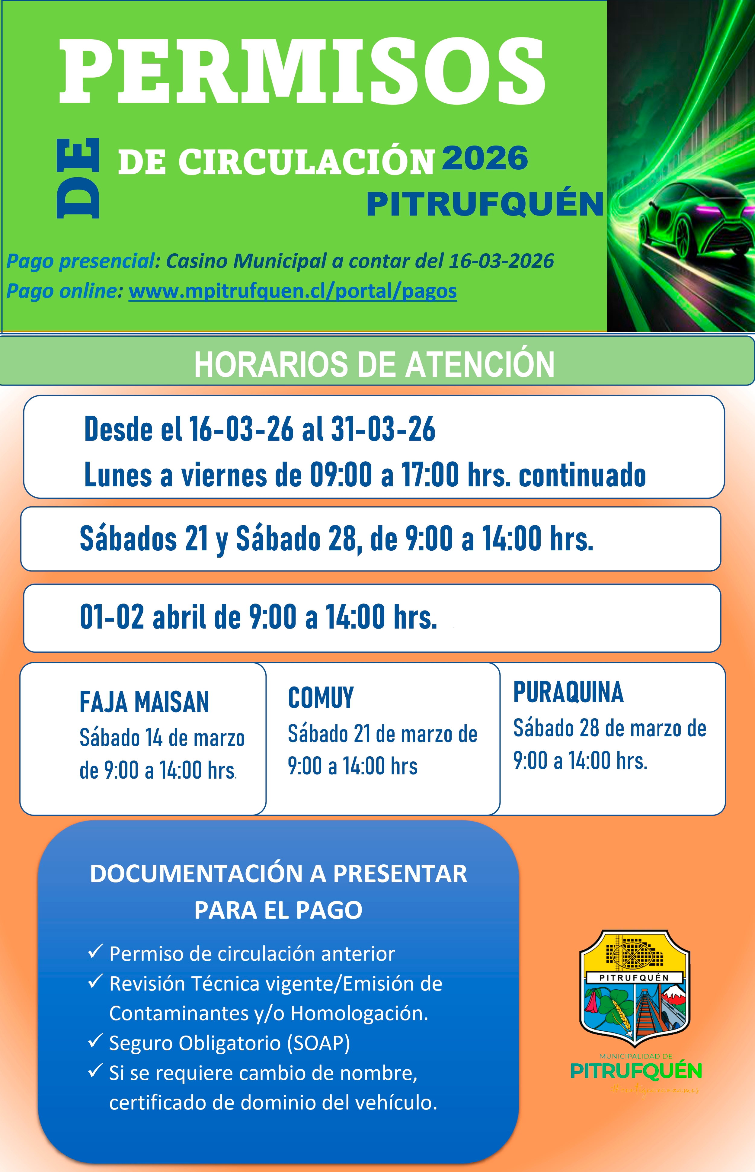 * Pago presencial: Casino Municipal a contar del 16-03-2026